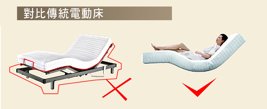 ⅹ傳統的電動床是整床式,其實蠻舒服的,但是也需要獨立空間或是把媽媽的床整個丟掉。