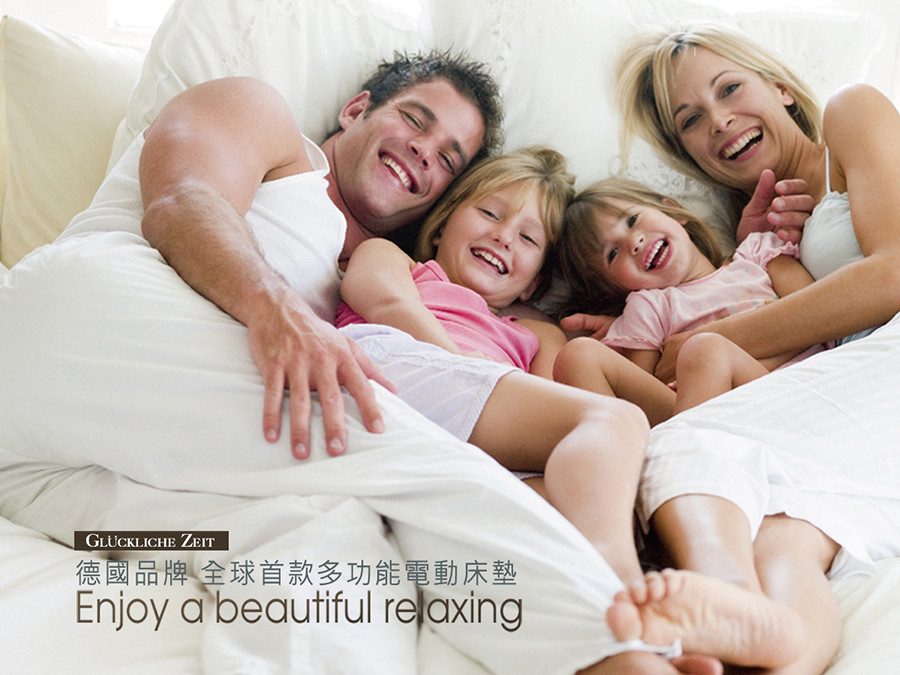 古洛奇電動床墊專為全家人居家設計的研發設計企劃,採用德國品牌伸降馬達低噪音。