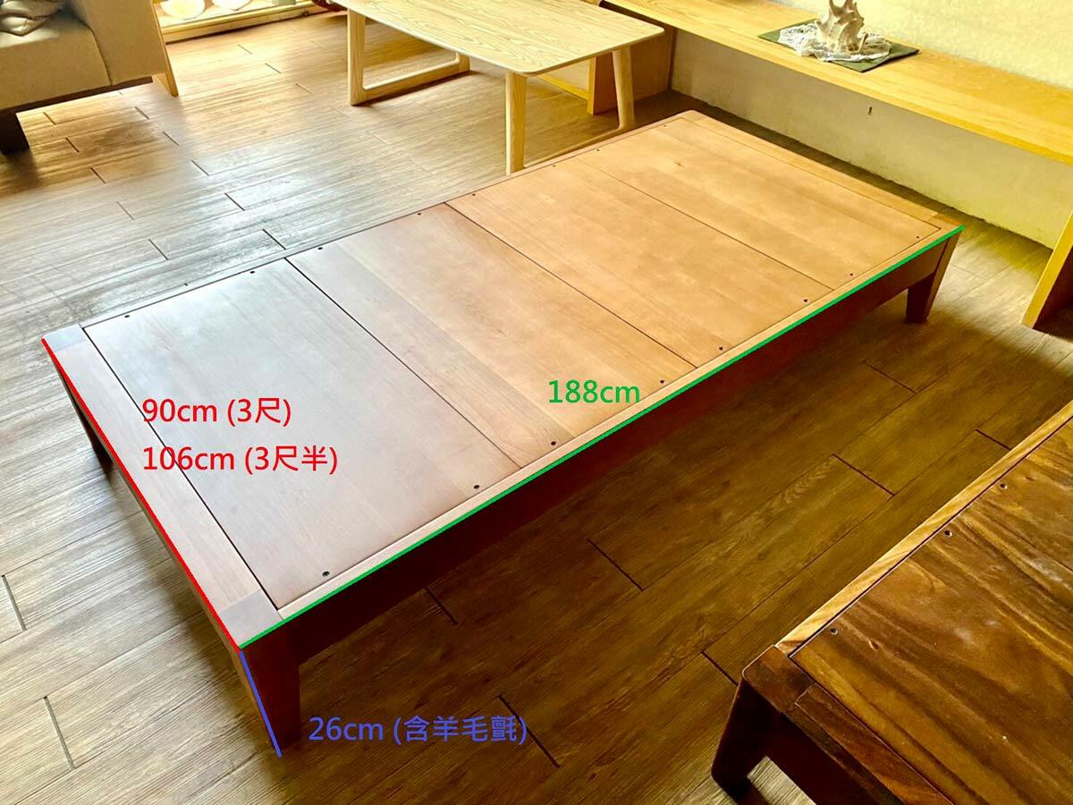 尺寸:3尺標準單人床架 ( WLH 90cm x 188cm x 26cm ) 原價 25,000元。